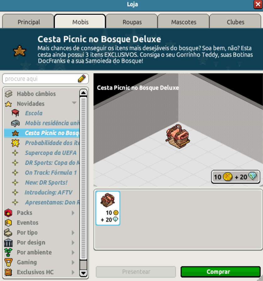 Na manhã desta terça-feira (26/09). entrou no catálogo o mobi clicável Cesta Picnic no Bosque Deluxe, pelo valor de